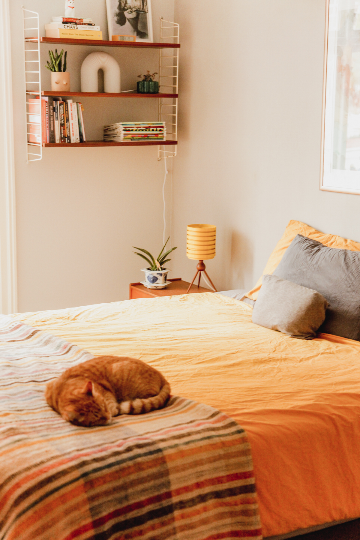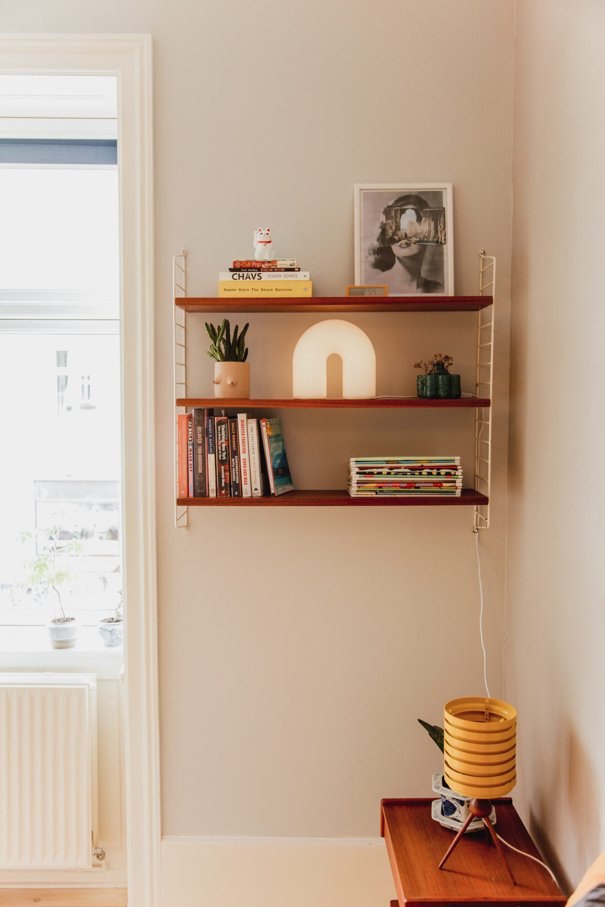 String Shelves with a Ferm lamp