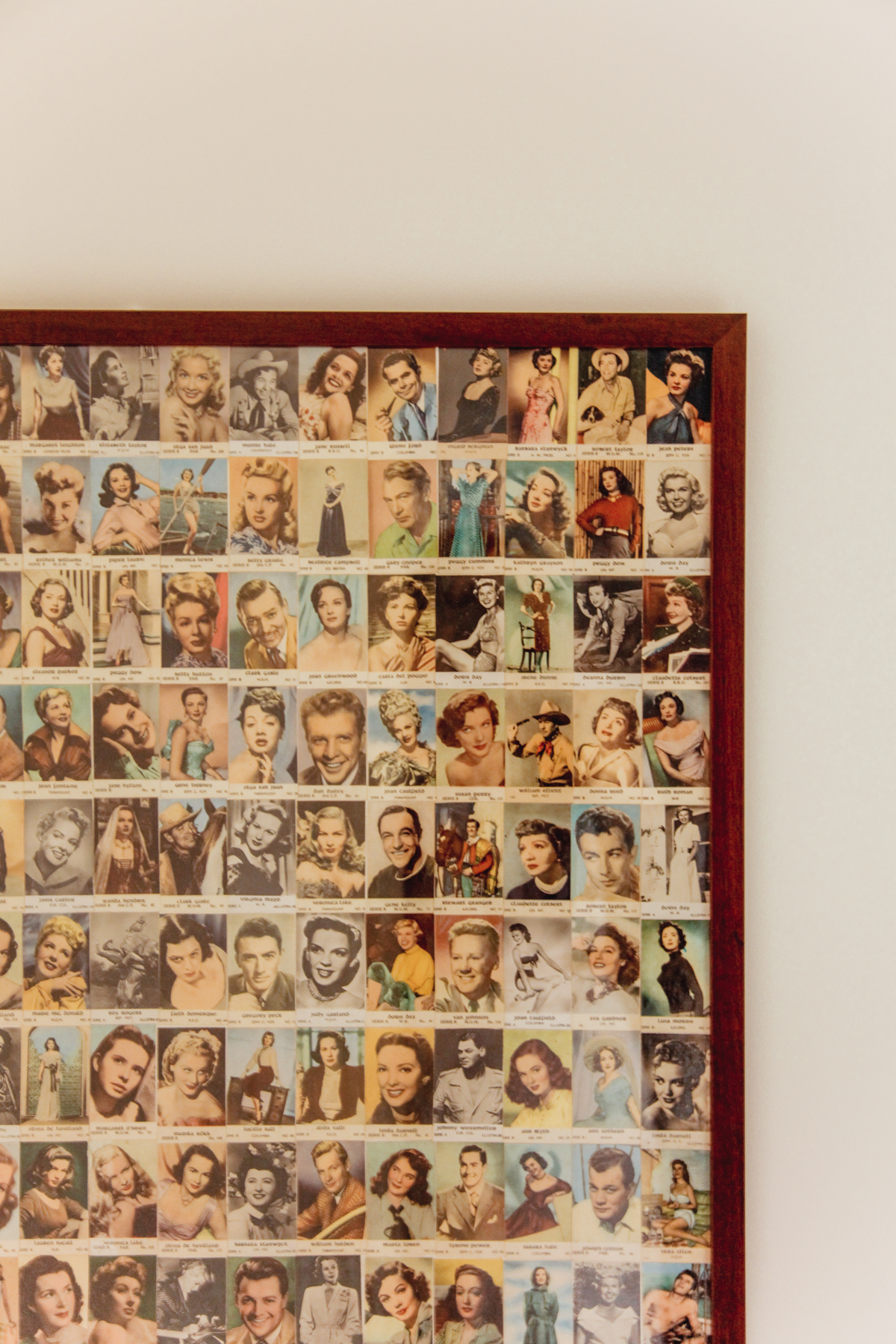 On the wall, we have a collage of different old movie star trading cards that I found at a flea market in Malmö.