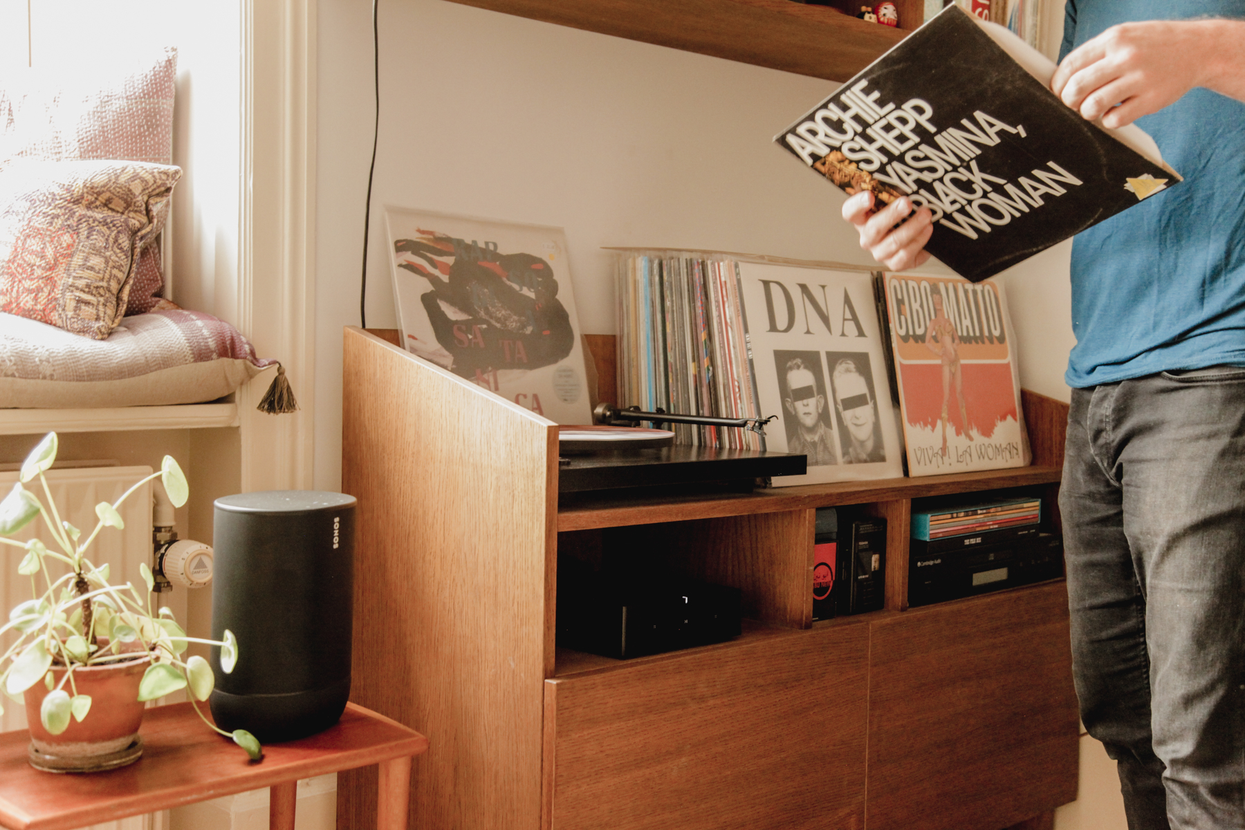 Billy: Before we had a Sonos amp, when you put on a vinyl record the kitchen is too far away to hear it. The neighbors probably heard it more than we did.