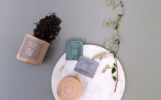 NUTE creates flavor combinations that draw from the long tradition of tea-making in countries such as China and India, while bringing in new aspects of Scandinavian nature and seasonality. Their latest, the Spring tea, is a green tea that combines elderflower, peppermint and licorice root.