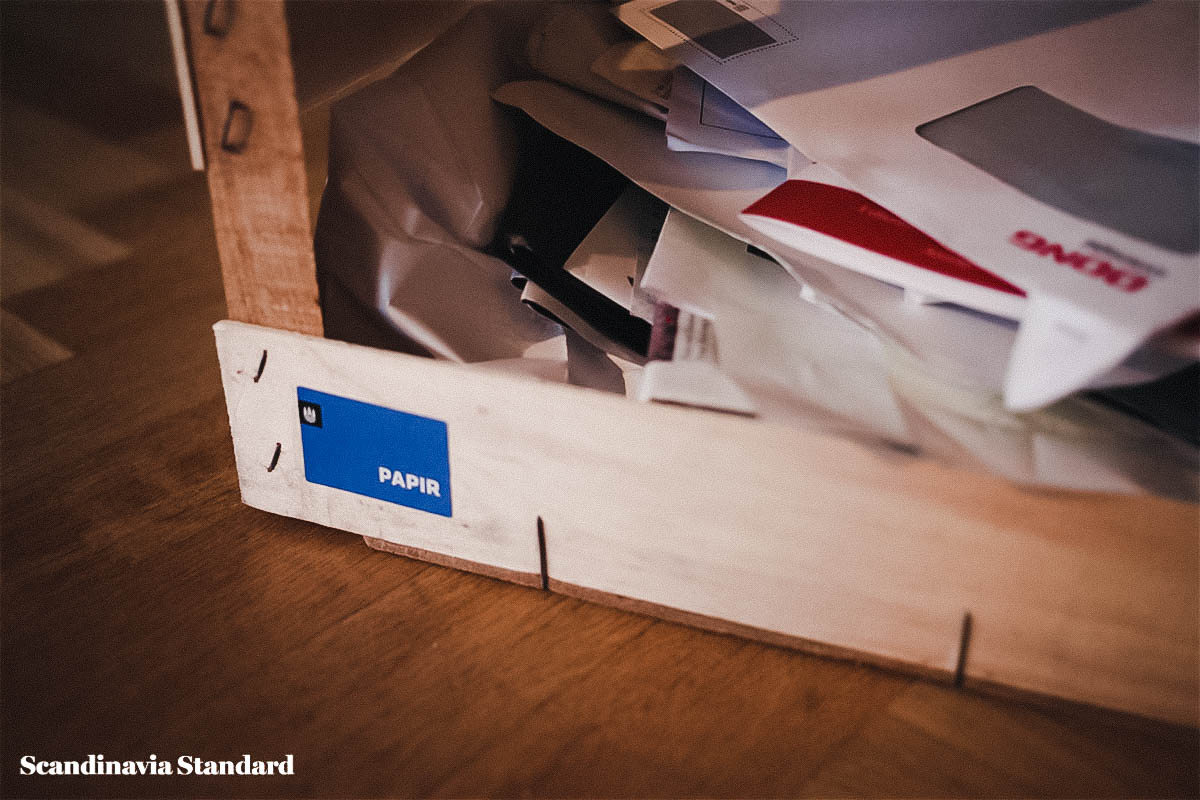 Crates from Aarstiderne, an organic farm located north of Copenhagen that delivers direct to your door, are perfect for creating your own recycling system. Simply collect them, stack and label. Done. Easy.
