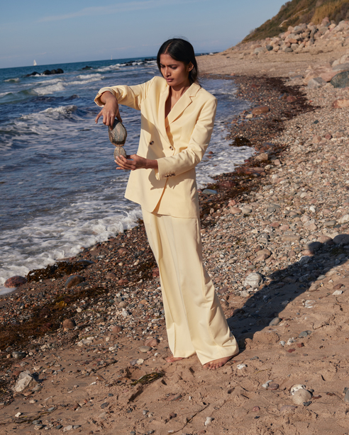 For summer. No, really. This was a trend that was present on the streets and the runways, as more than one guest opted for a midi leather skirt with a colorful t-shirt. On the runway, Remain Birger Christensen used leather for shirts, shorts, trousers, and jackets in deep burgundy, burnt orange, and a two-tone black and white; Lovechild 1979 stuck to gunpowder gray for its vintage-style dress; Gestuz crafted a longline jacket with contrasting leather panels and matching skirt; Soulland cut a double-breasted jacket and wide-leg trousers from snakeskin – even in leather, the suit isn’t budging.