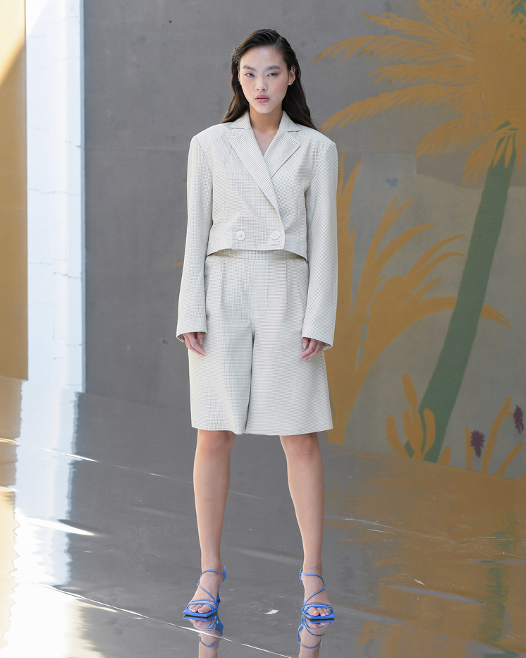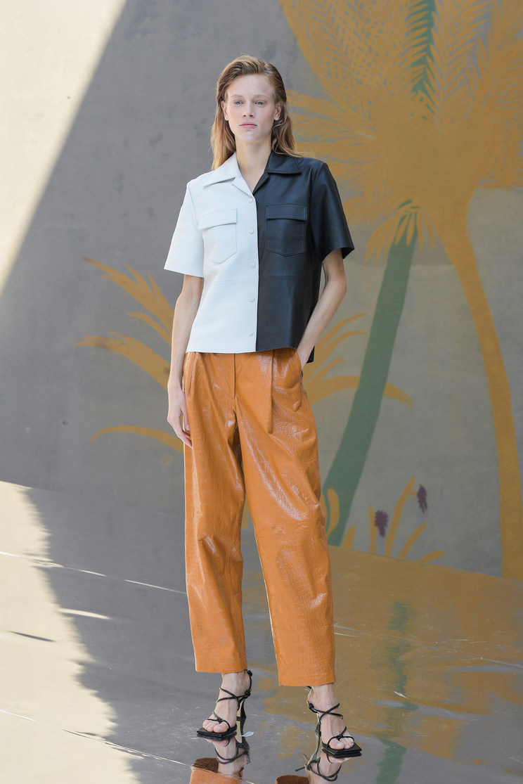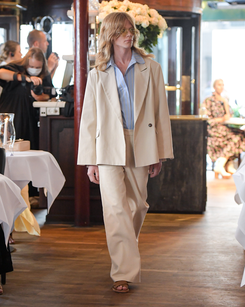 For summer. No, really. This was a trend that was present on the streets and the runways, as more than one guest opted for a midi leather skirt with a colorful t-shirt. On the runway, Remain Birger Christensen used leather for shirts, shorts, trousers, and jackets in deep burgundy, burnt orange, and a two-tone black and white; Lovechild 1979 stuck to gunpowder gray for its vintage-style dress; Gestuz crafted a longline jacket with contrasting leather panels and matching skirt; Soulland cut a double-breasted jacket and wide-leg trousers from snakeskin – even in leather, the suit isn’t budging.