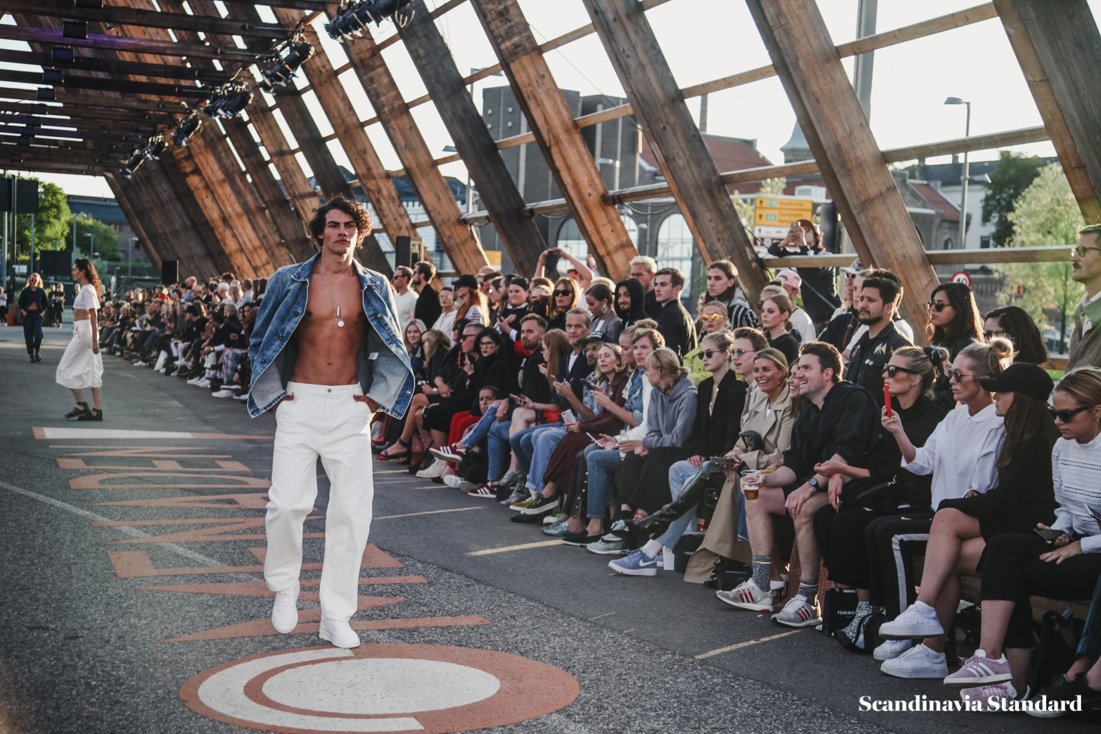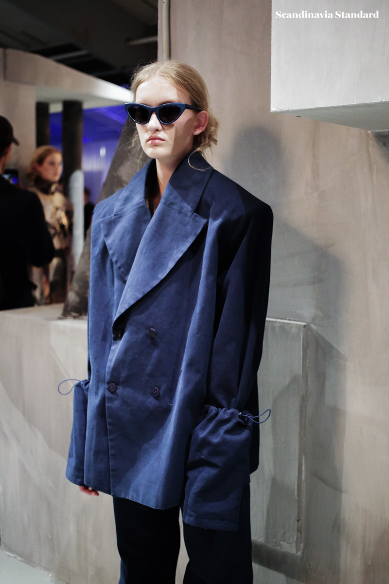 At Oslo Runway, IBEN showcased 1970s silhouettes with navy pants and light blue knits. Moods of Norway‘s shiny deep blue was a day-to-night look that actually lives up to the name. The 90s extravaganza at Tom Wood hit its peak with oversized chambray.