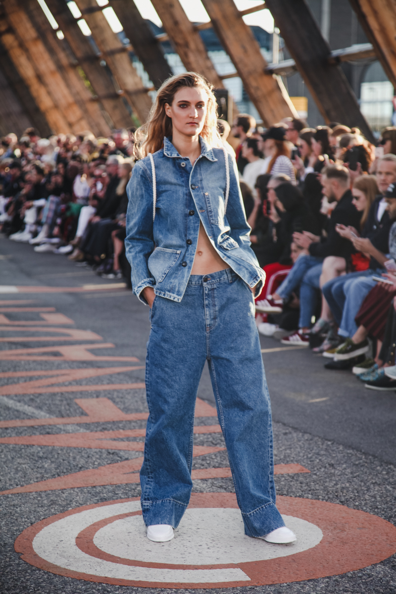 Han Kjøbenhavn‘s oversize silhouettes and strong shoulders were a mix of textural athletic-wear and near-cartoonish professionalism. Holzweiler opened and closed their show with Erin Wasson: it doesn’t get more 90s than that. But the clothes were on-decade as well, with oversized hoodies, mixed plaid (tied around the waist, no less) and boxy cuts. The genderless layers of Martin Asbjørn were modern with strong call-backs to the 90s, particularly the button-down shirts opened over t-shirts – a real Cobain moment – and gold thin chains.