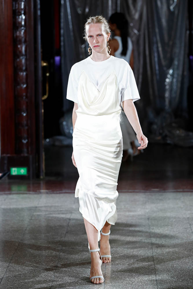 Stockholm Fashion Week presented the most interesting and poetic take, with brands Lazochmidl and Emilie Jarnell highlighting how adornment is not just for femme dressing, and Busnel highlighting the androgyny in clean lines.