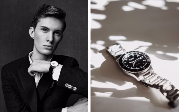 The beauty of the watch is that it’s not a rigid design: it comes with Roman numerals, conventional numbers, and dashes, yet the overall collection looks uniform. It’s all about the shape of the face, spacing of the dial, and hands. The Classic 1962 is available with a leather or metal mesh strap, in a number of finishes, allowing you to choose the style that’s right for you. Whichever is on your wrist, this is a watch that announces who you are by being as quiet as possible.
