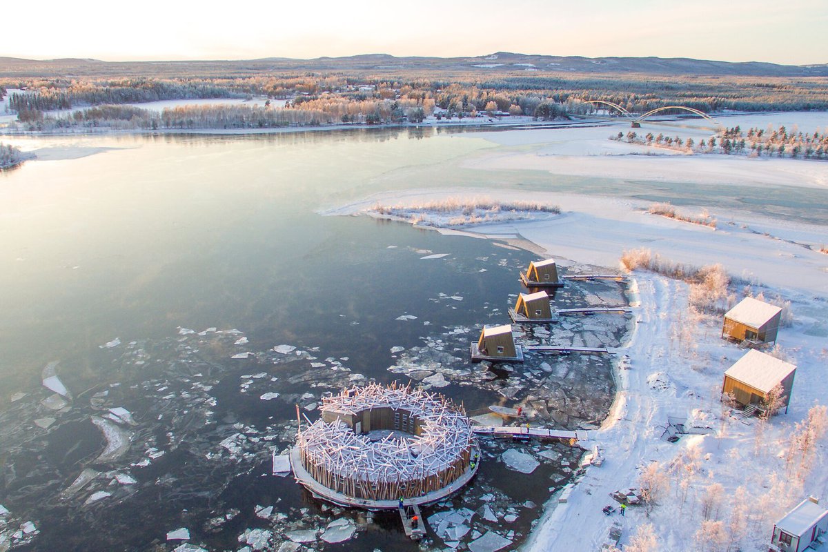 Owner Per-Anders Eriksson had the idea of opening a floating sauna back in 2010. This dream came to fruition when he opened the Arctic Bath, a floating circular building and Nordic spa, inspired by the logging heritage of the Lule River.