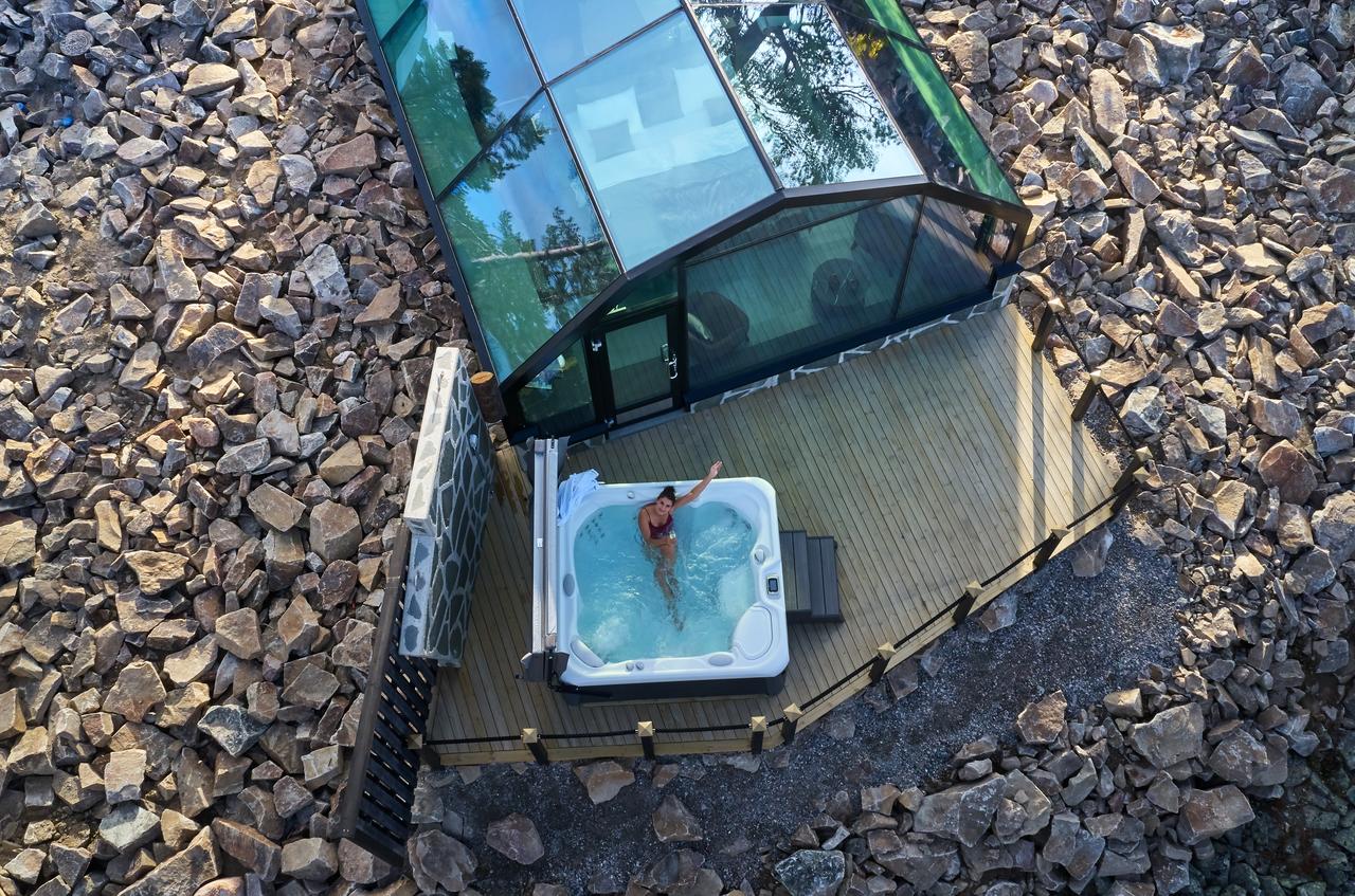 Outside of the central Spa Nest there are comfortable and warm double cabins floating on the surrounding lake, or slightly more stable cabins on land for the seasick… All of them include a private deck to enjoy a morning coffee on and pellet stoves for charming evenings.