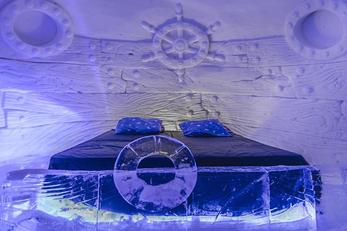 The Kirkeness Snowhotel has 20 frosty rooms for those that run warm. Each snow chamber sleeps 2-5 people and has detailed sculptures etched into the snow walls. Rooms hold a temperature of -4C, but thanks to insulated mattresses and thermal sleeping bags you’ll stave off any frostbite with ease.