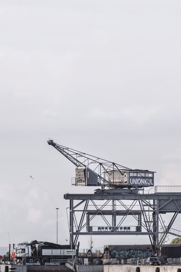 A one-room hotel in one of the most unconventional spots – the old engine room of a disused coal crane. Featuring modern, minimalist decor with beautiful and functional Danish furniture with an all-black design that creates a sense of intimacy and calm. Guests have exclusive access to two terraces in each direction for both sunrise and sunset views, as well as a small lounge in the old crane operator compartment at the top of the crane.
