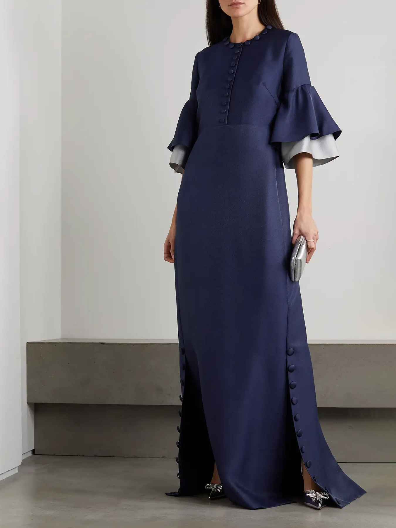 When wearing a dress to a white tie event, go for the gown. That means floor length and luxury fabrics, similar to black tie. White gloves are traditional but today are considered optional.