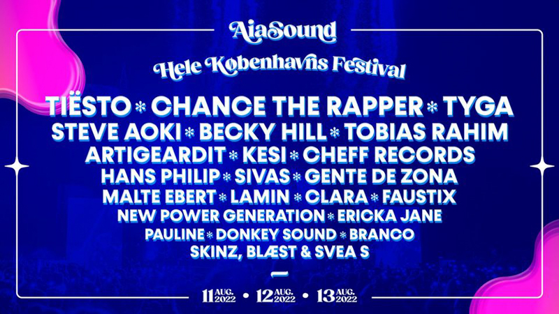 Copenhagen’s new three-day festival AiaSound is taking over Tiøren. The festival combines music with food experiences and community spirit. Find the program including Tobias Rahim, Steve Aoki, and Clara on the website. Day tickets cost 599 DKK and the full festival ticket 1299 DKK.