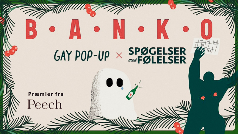 Gay Pop-Up Bar has joined forces with podcaster Ditte, Josefine, and Simon from “Spøgelser med følelser“: The evening will be kicked off with Banko from 6:30 pm. Tickets are sold out but everyone is welcome to drop by from 8 pm for drinks and good times.