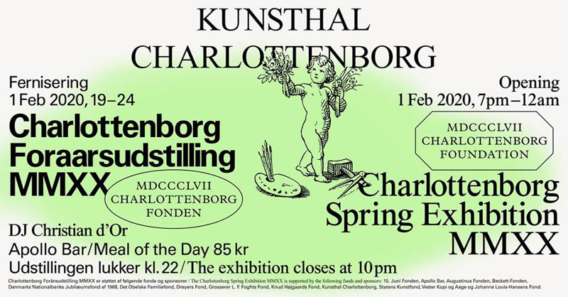 It’s that time of the year again: Charlottenborg Foundation and Kunsthal Charlottenborg invite to the opening of the Charlottenborg Spring Exhibition 2020, one of the most important exhibitions in Europe since 1857. The doors open at 7 pm and besides the exhibition, there will be a speeches including the announcement of this year’s winners of the Solo Award and the Talent Award, as well as music. Admission is free and everyone is welcome! Celebrations will go until midnight and the exhibition closes at 10 pm.