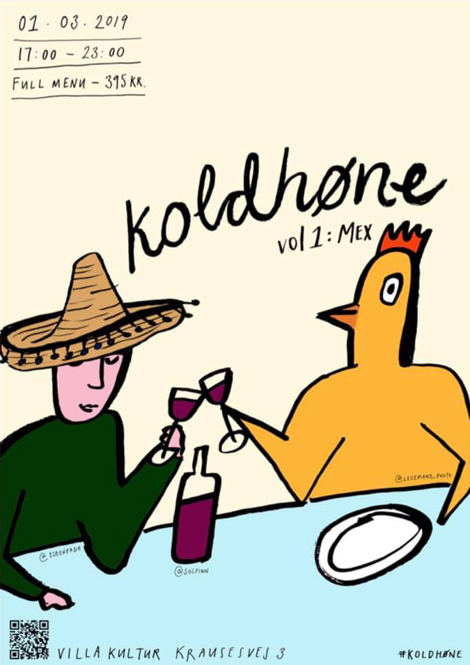 Koldhøne is a joint supper club pop-up hosted by four friends. Be part of the first edition and indulge in Mexican recipes learned from old ladies, cocktails, wine, cider, and whatever else your hosts will come up with. The full menu is 395 DKK and includes a themed aperitif and a sweet wine after dinner.