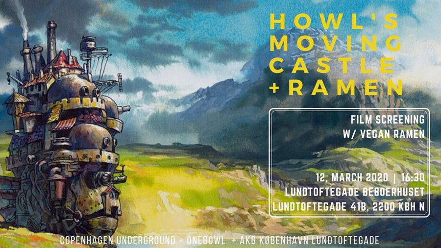 Copenhagen Underground, One Bowl, and Lundtoftegade have joined forces to present this much-requested movie and ramen combo for a fantastic cause. At 5 pm, Studio Ghibli classic “Howl’s Moving Castle” will be shown, followed by vegan ramen at One Bowl. The event is donation-based, so dig deep! All of the collected funds will support the Copenhagen Underground initiative, Lumen Union, which delivers projectors, speakers and gaming consoles to refugee camps in different parts of the world in an effort to create safe spaces for cinema and entertainment.
