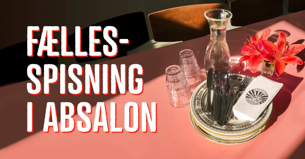 Want to enjoy a cosy Sunday dinner but not in the mood to cook yourself? Join the community dinner at Absalon and take a seat at one of the long tables. Dinner is served at 6 pm but please arrive until 5:45 pm, otherwise your seats will be released. Tickets cost 100 DKK.