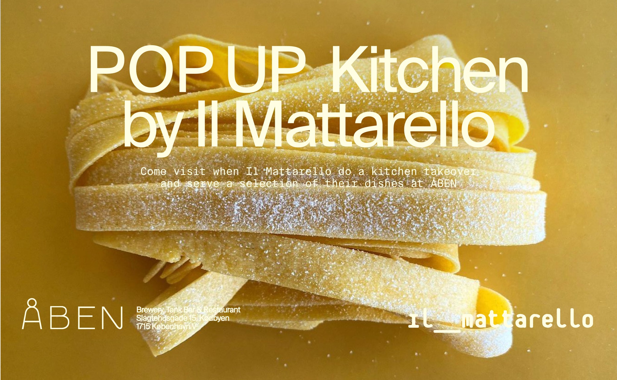 Indulge in some delicious pasta in the industrial yet stylish surroundings of ÅBEN’s Brewery & Tank Bar in Kødbyen. Organic and artisan Pasta Lab Il Mattarello will take over the kitchen from Thursday to Saturday, each from 5:30 pm to 9:30 pm. Pasta dishes are available from 129 DKK.