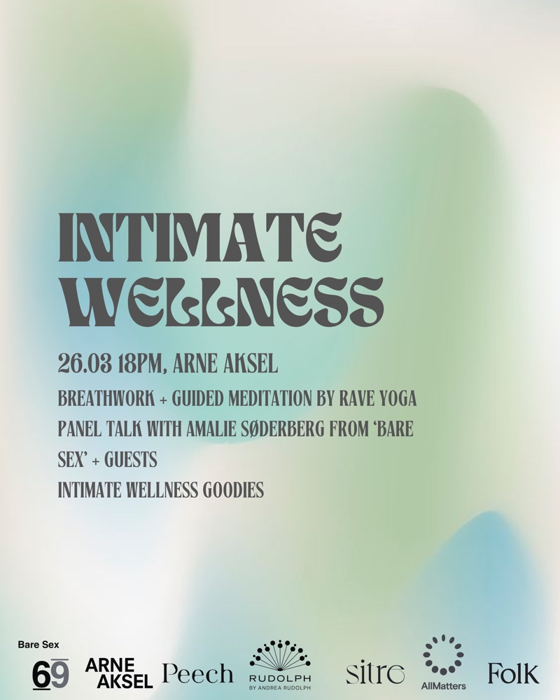Well-being concept RAVE is teaming up with Amalie Søderberg from 24syv podcast “Bare Sex” for an evening around intimate well-being. Helen from RAVE will guide a 30 min breathwork session focused on connecting to the body and creating a safe atmosphere in the room. The focus of the event is a panel talk led by Amalie Søderberg as well as other invited experts, discussing topics surrounding sexual health, intimacy, and body positivity with the opportunity to ask questions. The event will take place at Arne Aksel‘s showroom and in collaboration with Copenhagen-based intimate wellness brand Peech, Rudolph Care, female hygiene brand All Matters, and sex wellness brand Sitre, who are providing goods for participants to bring home as an invitation to incorporate into a regular wellness routine. Drinks will be served by Folk Kombucha. From 6-7:45 pm, all genders are welcome. Tickets cost 350 DKK and can be purchased via RAVE’s scheduling platform, accessed through @rave__yoga on instagram. Please reach out to [email protected] for any questions.