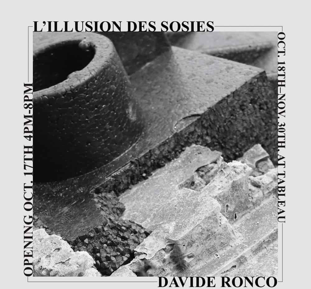 Davide Ronco’s exhibition “L’ILLUSION DES SOSIES” is on display at Tableau from 18th October – 30th November. Literally translated, the title means “the illusion of lookalikes“. Sculptures moulded in discarded and used styrofoam present the leftover packaging in a new shape and, at the same time, transport memories of their past life.