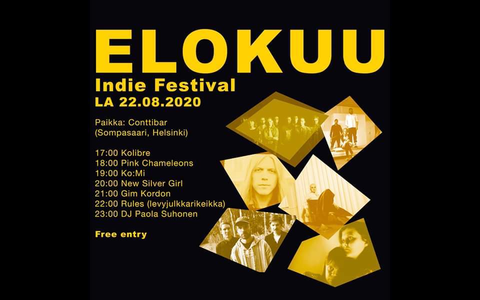 For the first time, Elokuu: Indie Festival brings together Finnish indie musicians to perform at Sompasaari’s conttibar. There will be performances from Rules (with their debut album release), Gim Kordon, New Silver Girl, KO:MI, Pink Chameleons, Kolibre, and DJ Paola Suhonen. Free event.