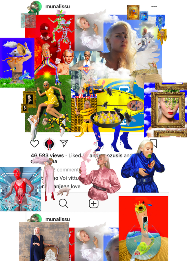Liisa Väärikoski calls herself an “unapologetic feminist, who takes her space in the virtual world exploring the themes of sexuality and womanhood, spicing it up with humour and provocation.” Her alter ego Munalissu is a project existing somewhere between reality and fiction, with Instagram as its main platform.