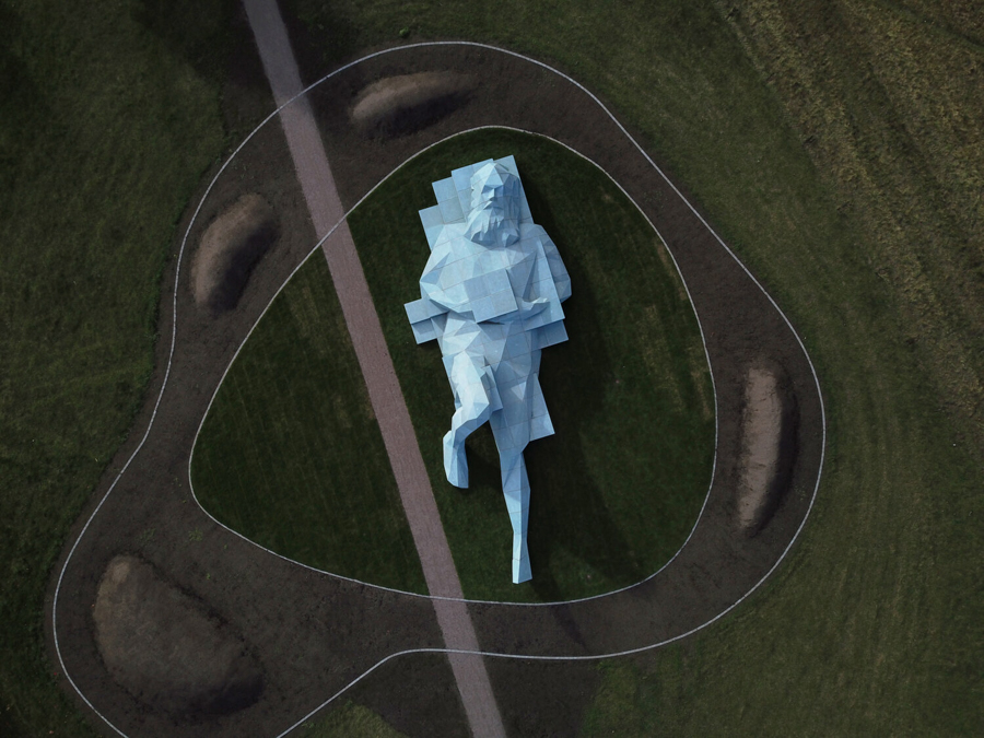 Two new sculptures by artist Xavier Veilhan have been added in Skärholmen. They are both made of light blue concrete and are massive.