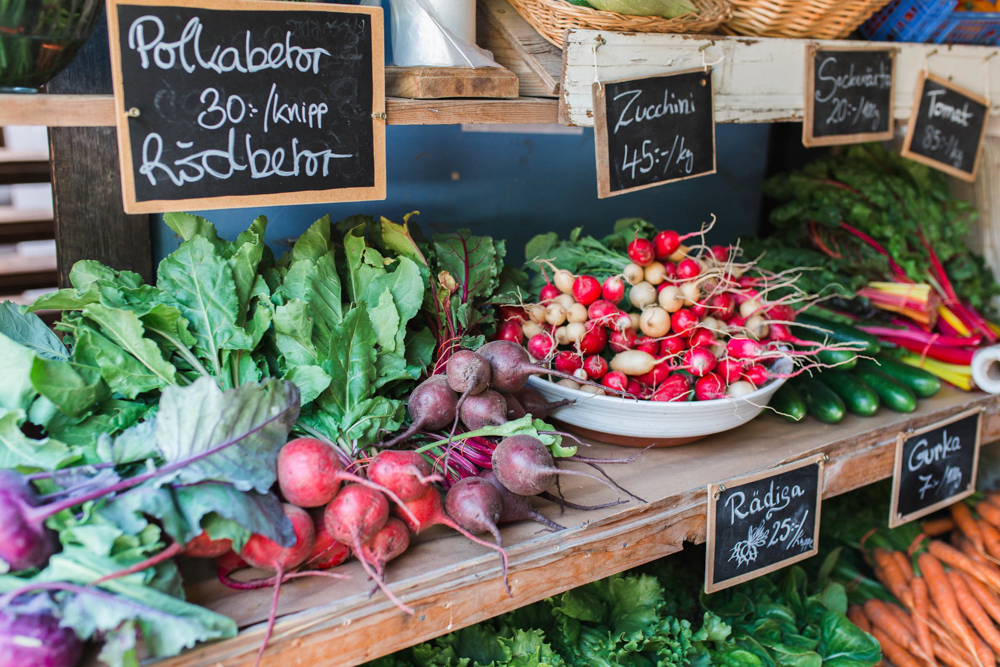 Rosenhill out on Ekerö is closed for the season, but on this day you have the chance to purchase vegetables, fresh sourdough bread, honey, apple juice and more at the Reimersholme Hotel.