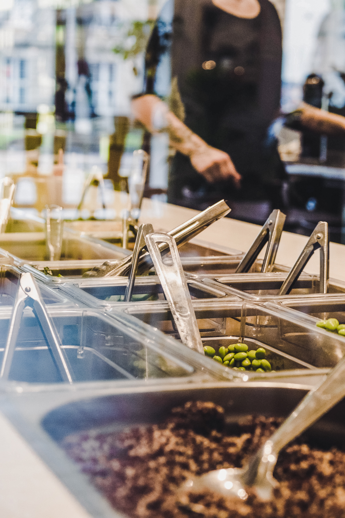 “At each step, you can choose something different,” Frederik says. “we have eight sauces, eight vegetables, six toppings, and six premiums [meat, fish or tofu]. If you really get into detail, you could make ten billion different bowls!”